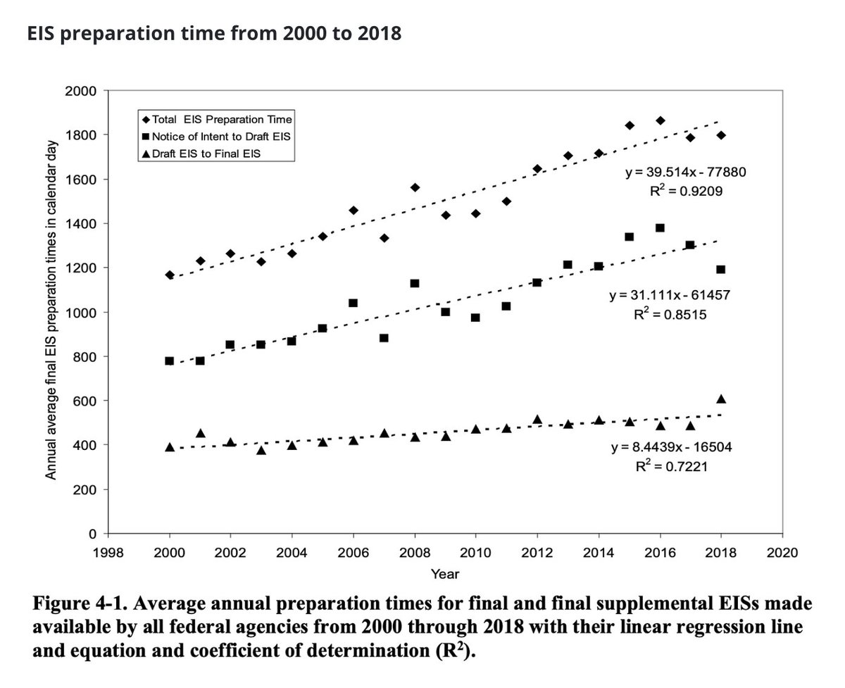 “NEPA environmental reviews just get longer and longer and longer… (this trend is driven by litigation and will not stop without permitting reform)” (@AlecStapp)