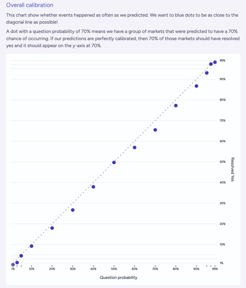 “60% of the time it happens 57% of the time. Manifold Markets is pretty well calibrated” (@NathanpmYoung)