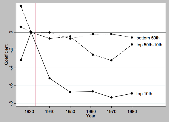 Surprisingly, the career trajectories of the scientists that stayed in the German departments did not seem affected at all. The reason the dismissal of their colleagues seemed to cause a persistent drop in quality that lasted decades was the inability of the universities to recruit at the high levels they had been previously.