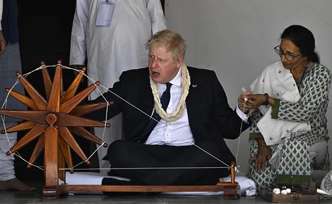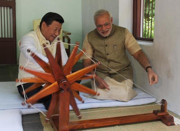 UK PM Boris Johnson (source) and President of China Xi Jinping (source), spinning the Charkha. It is a rite of passage for foriegn leaders visiting India.