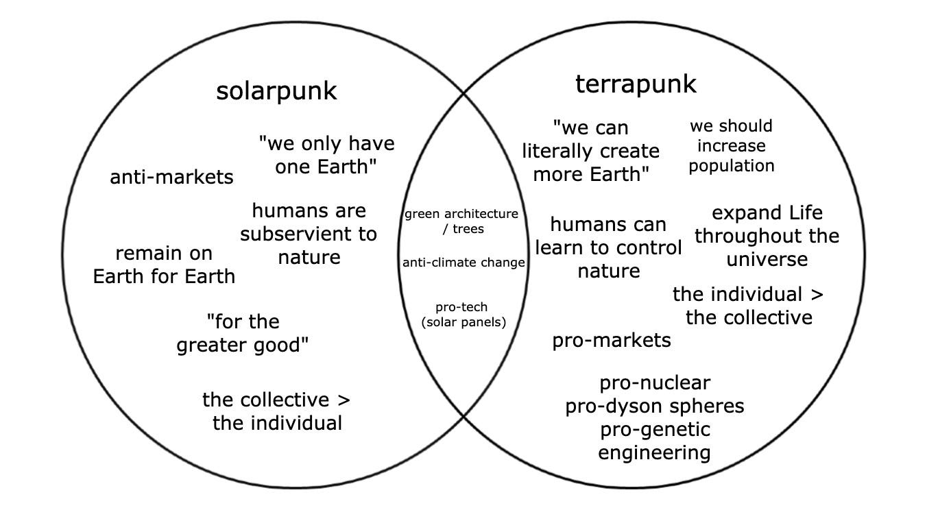 Steampunk —> Cyberpunk —> Solarpunk —> Terrapunk.