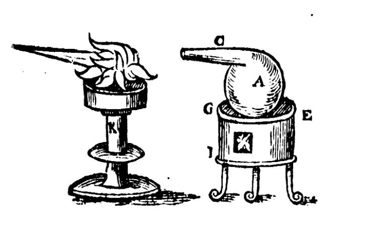 This was no mere toy, but found plenty of practical use. The spout of the philosophical bellows was often directed at a lamp’s flame, to have a sort of blow-torch effect. It was used, for example, to do finer tasks like bending glass pipes, or in fine metalwork — there are loads of accounts of this throughout the fifteenth, sixteenth, and seventeenth centuries, with some authors even talking about its merits relative to other instruments, suggesting real-life use. Its heat could, apparently, also be used to get fires going in wet weather, or from damp wood (provided you had some dry wood on hand to get the aeolipile itself going).2