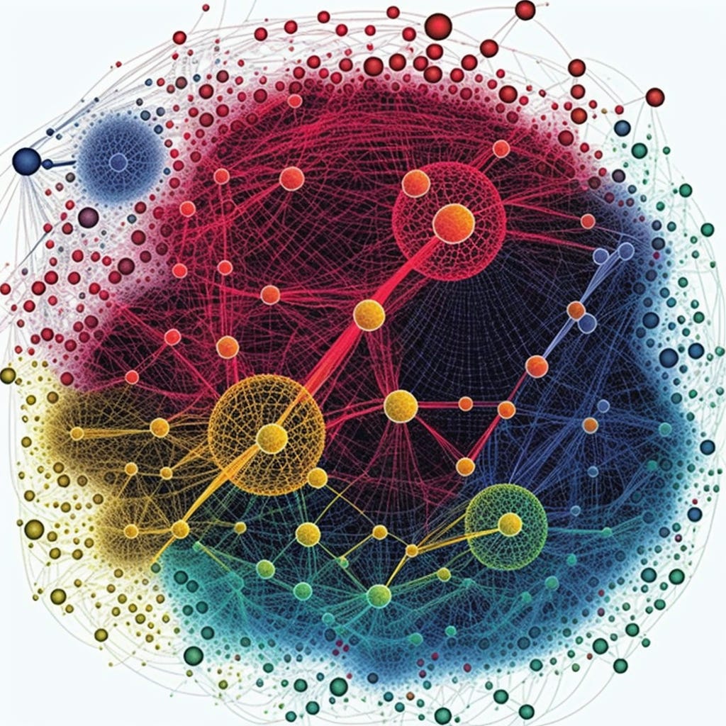 Midjourney: A high-resolution, colorful network graph of filter bubbles