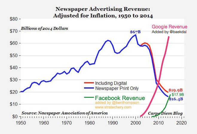Tech is eating the media’s lunch, in terms of eyeballs and in terms of advertising revenue:
