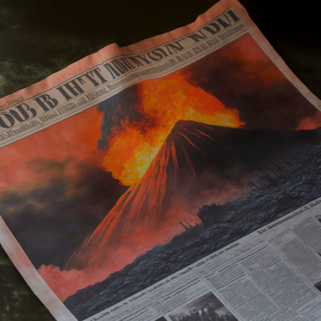 Midjourney: A newspaper printed in the fires of Mount Doom