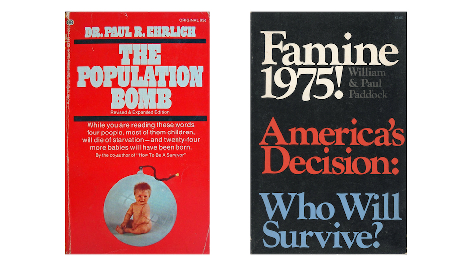 Fears of shortages lead to fears of “overpopulation”. If resources are static, then they have to be divided into smaller and smaller shares for more and more people. In the 1960s, this led to dire predictions of famine and depredation: