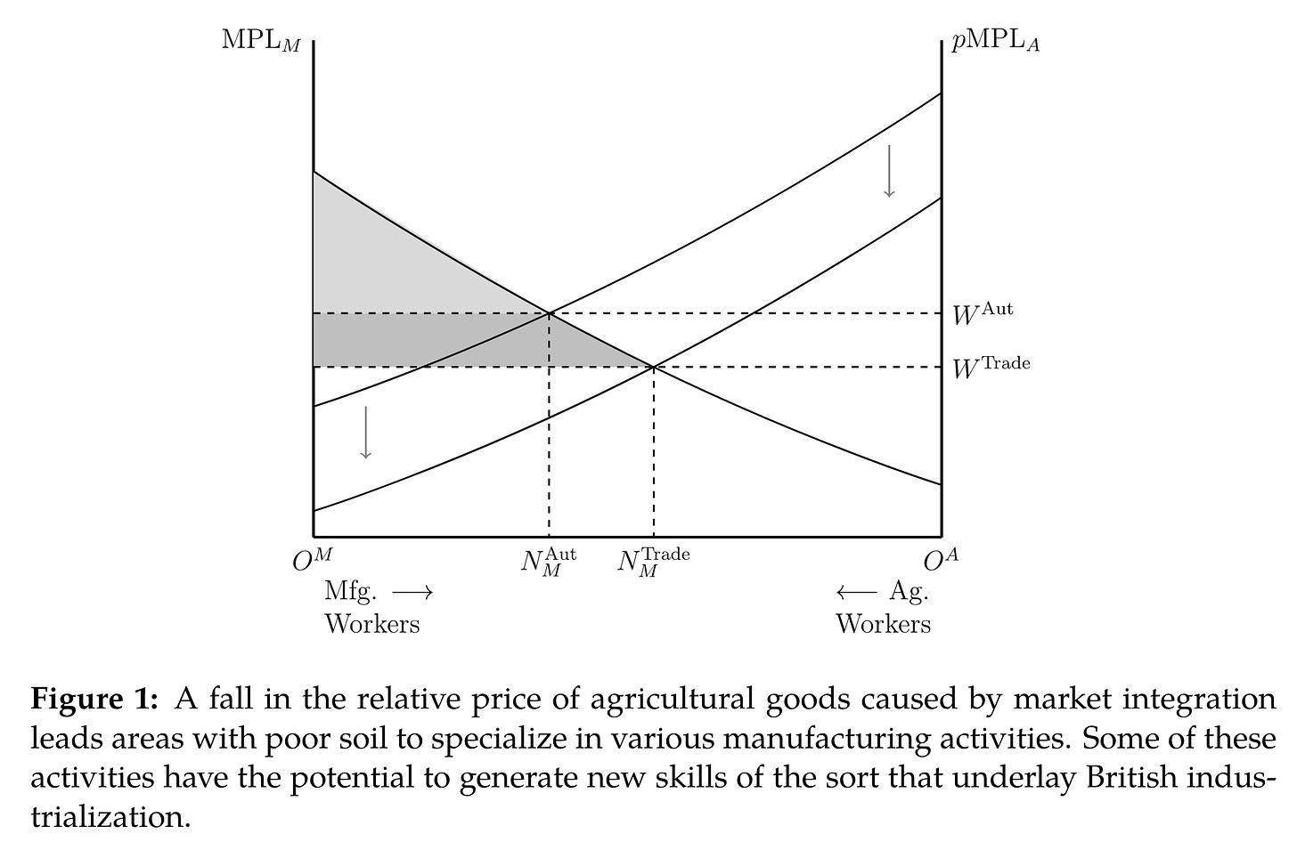 This isn’t an intellectual biography of Mokyr, though, so we’ll fast forward to 2014. Five years after Allen’s provocative The British Industrial Revolution in Global Perspective, which lays out his grand theory, Kelly, Mokyr, and O’Grada published their own in “Precocious Albion: A New Reinterpretation.” Taking a comparative approach, they concede that British wages were higher than French, but argue that this was merely compensation for higher labor force quality. Thus British unit labor costs—how much an employer paid to produce one piece of output—were paradoxically lower than French. There were two dimensions to this: “physical-cognitive” and human capital. British workers were fed better than the French, eating more meat and getting more calories in general; this made them stronger, more energetic, and smarter. Superior nutrition was the result of more productive agriculture, integrated internal transport systems, Irish imports, and the Poor Laws.2 Secondly, the British apprenticeship system worked well at transmitting tacit knowledge from masters to learners, despite the country’s embarrassingly bad education provision. This is undoubtedly a second-order effect, because one has to wonder why the lack of guild oversight and efficient conflict resolution should have obtained. Good institutions are endogenous! It’s also tough to quantify: the authors rely heavily on anecdotes about British workers setting up shop on the continent. But it’s indisputable that British workers A) ate more B) were more productive and C) were paid more than their French counterparts. This is one interpretation.