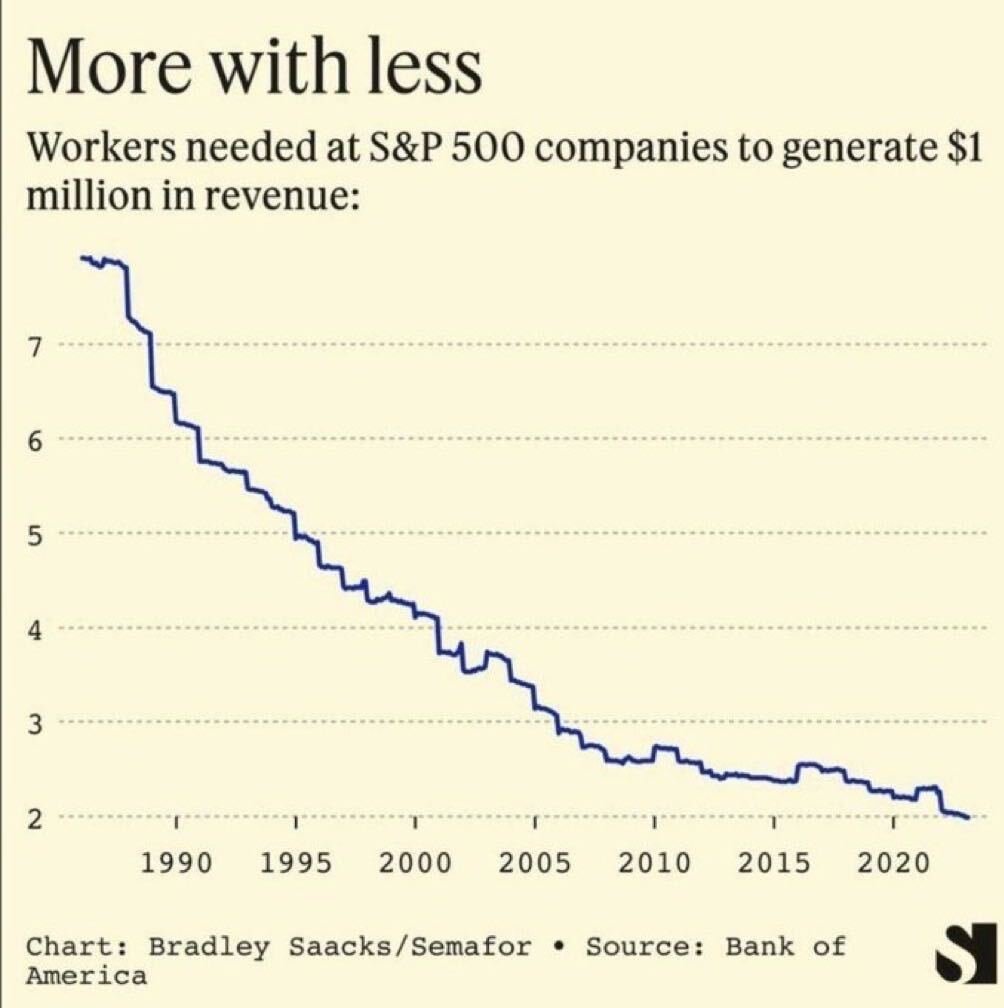 Workers needed at S&P 500 companies to generate $1M in revenue (@tobi)