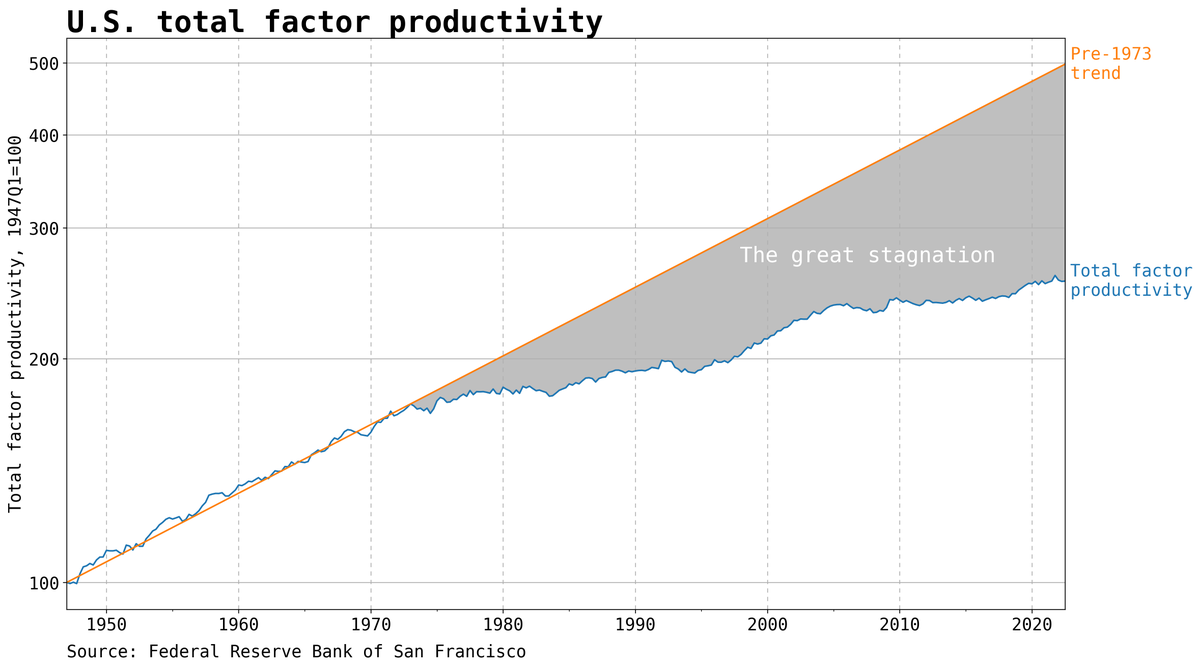 Your income would be double today if TFP growth hadn’t stagnated (@elidourado)
