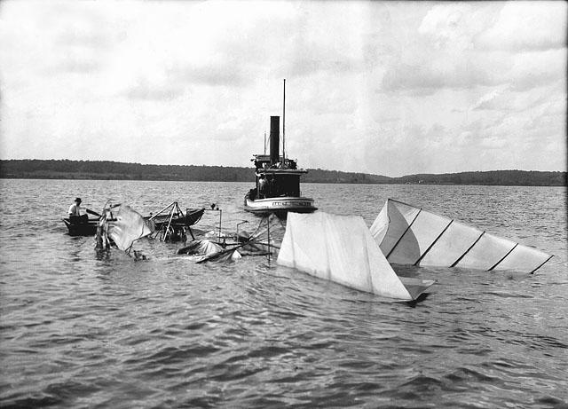 The wreckage of Langley’s plane in the Potomac River.