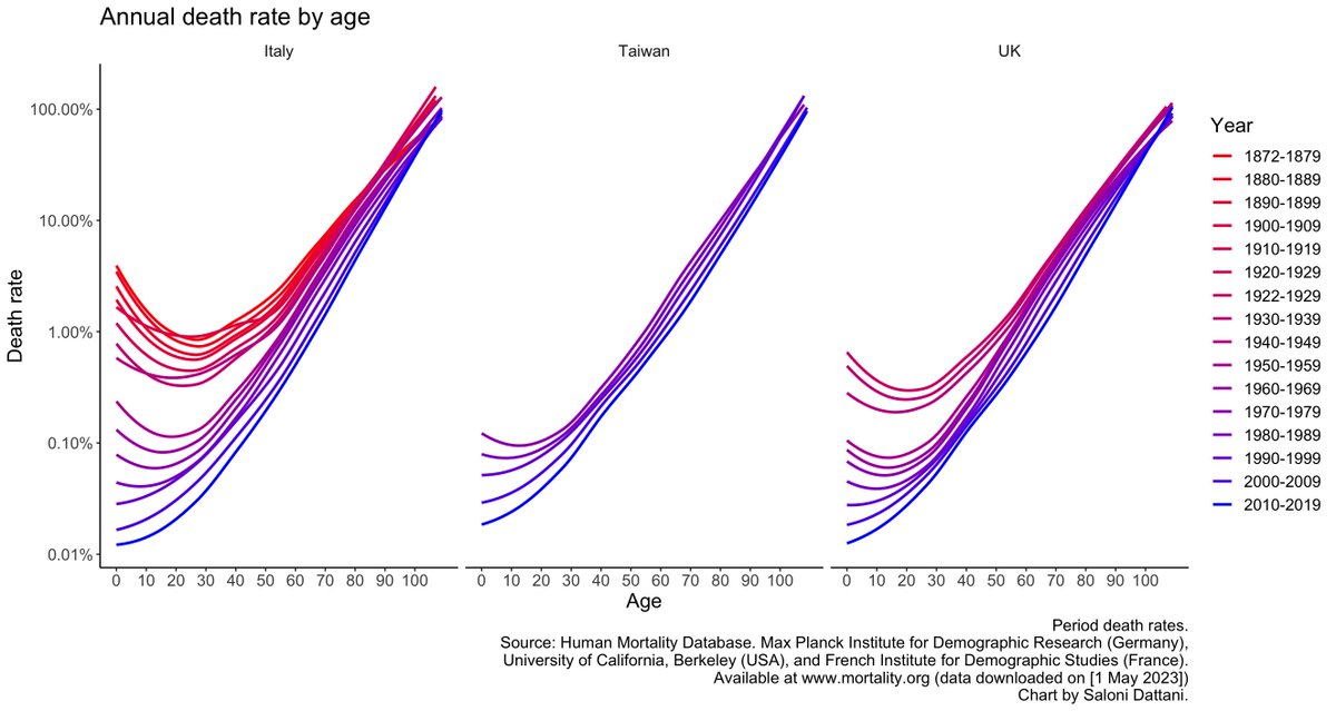 Infant mortality has improved so much that these J-curves have been straightened out