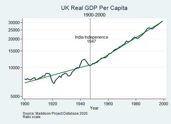 The UK continued to get rich after the end of empire (GDP growth actually increased)