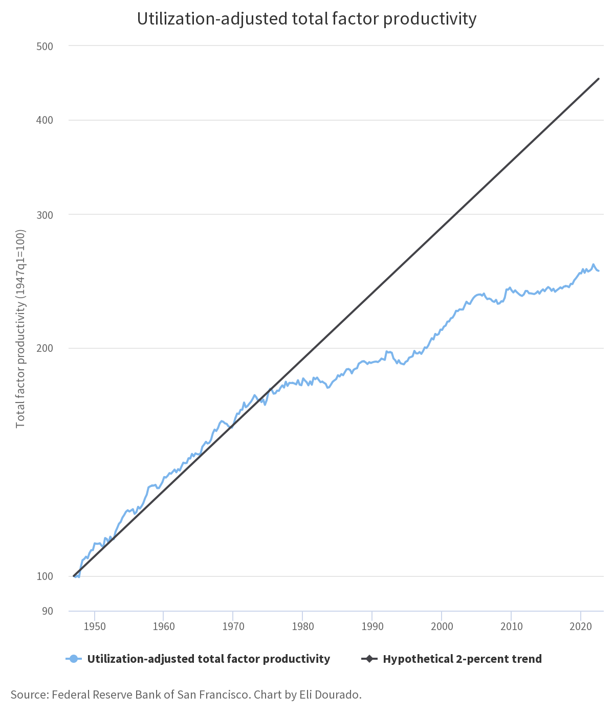 Fool me once. In 1987, Robert Solow quipped, “You can see the computer age everywhere but in the productivity statistics.” Incredibly, this observation happened before the introduction of the commercial Internet and smartphones, and yet it holds to this day. Despite a brief spasm of total factor productivity growth from 1995 to 2005 (arguably due to the economic opening of China, not to digital technology), growth since then has been dismal. In productivity terms, for the United States, the smartphone era has been the most economically stagnant period of the last century. In some European countries, total factor productivity is actually declining.