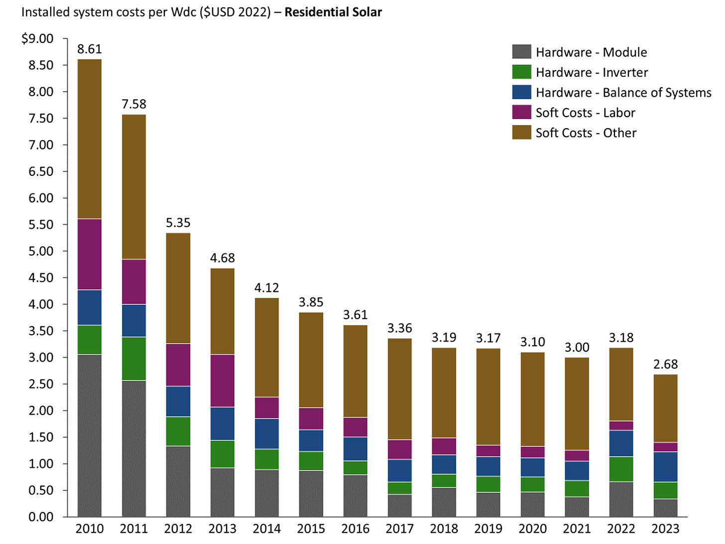 The price of solar photovoltaic (PV) modules—the panels in a rooftop solar system—has fallen dramatically as global production has ramped up.