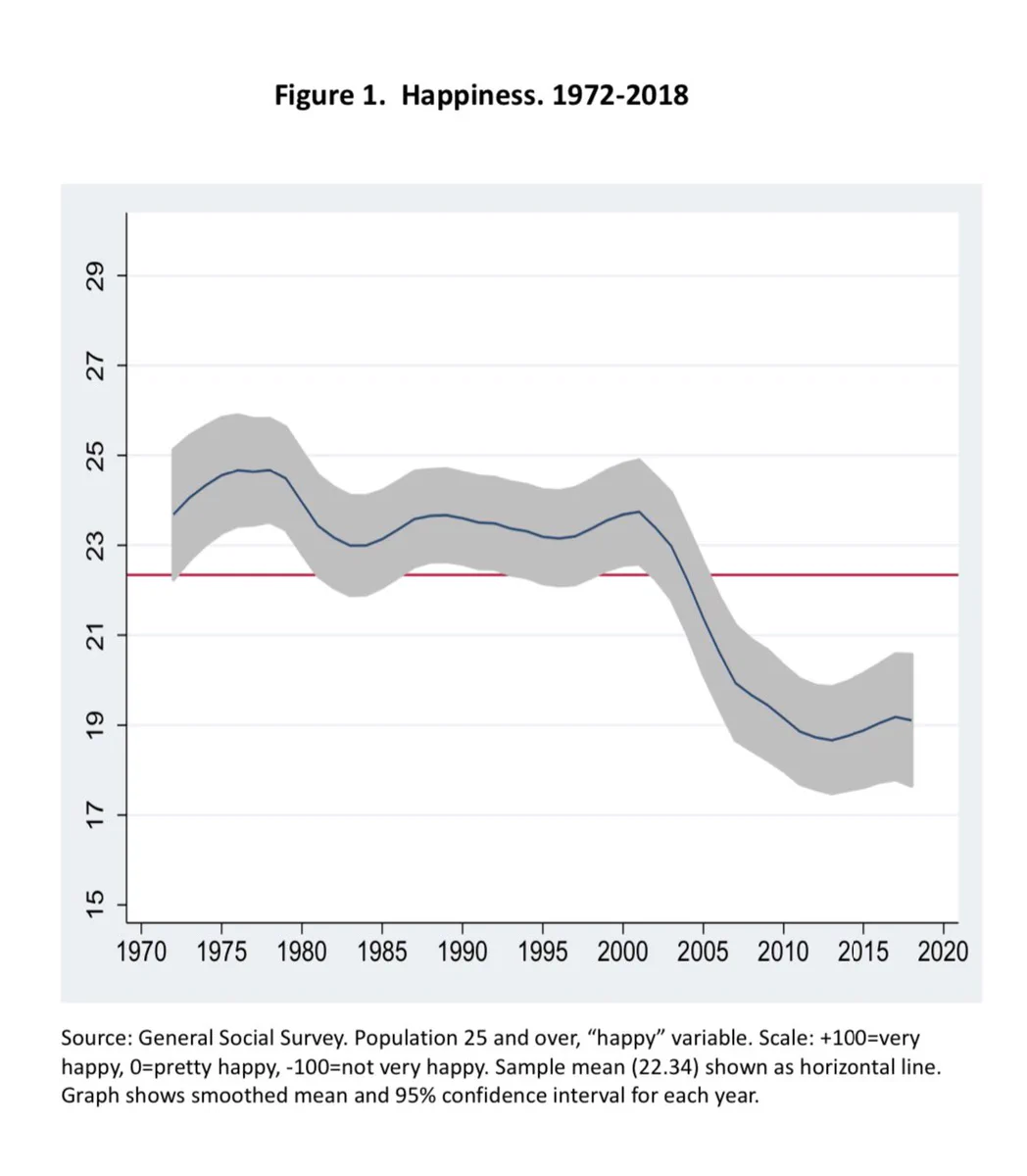 New paper on happiness in America since 1979. What happened in ~2002?