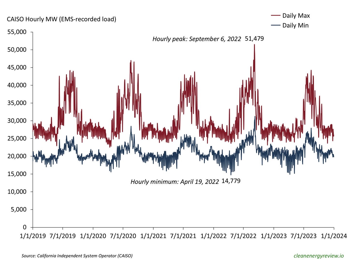 The upshot is that the system is actually pretty under-utilized by design, with spare capacity more than 99.99% of the time. Over the last 5 years, California’s average load has been just ~50% of its peak at 4:57pm on September 6, 2022