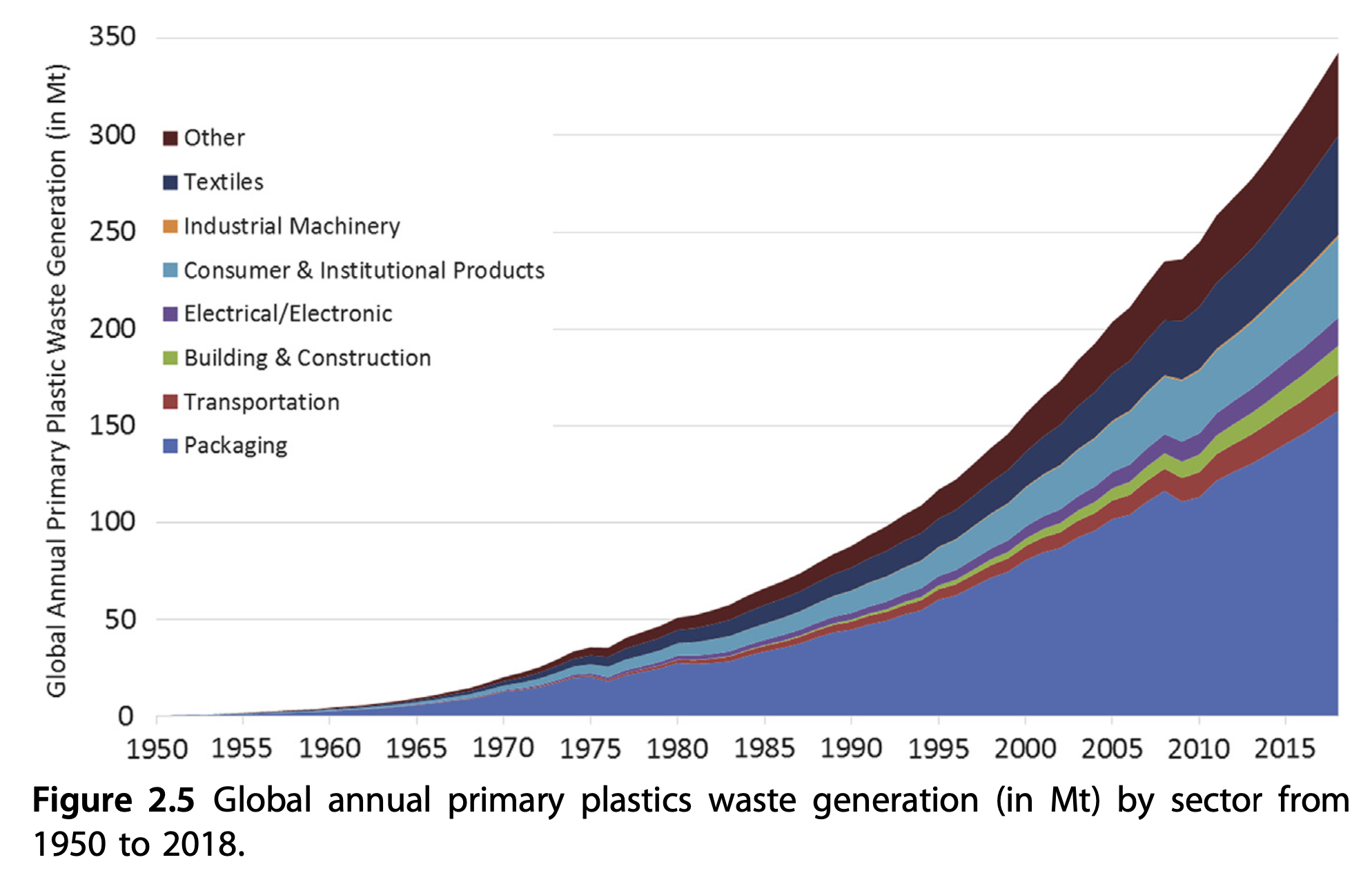 In 2018, packaging generated 46% of global plastic waste but was only 36% of global production. This gap arises from a short-used lifespan of most plastics for packaging and almost no recyclability. This needs to improve, but it’s hard to see much progress today where a mere 10% of all plastics produced since 1950 have estimated to have been recycled, let alone contribute to a more circular economy.