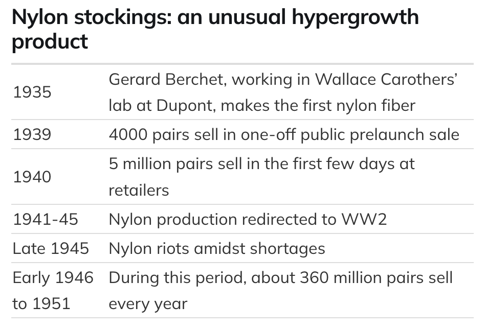 That product was nylon stockings. It’s probably one of the least well known product successes in history.