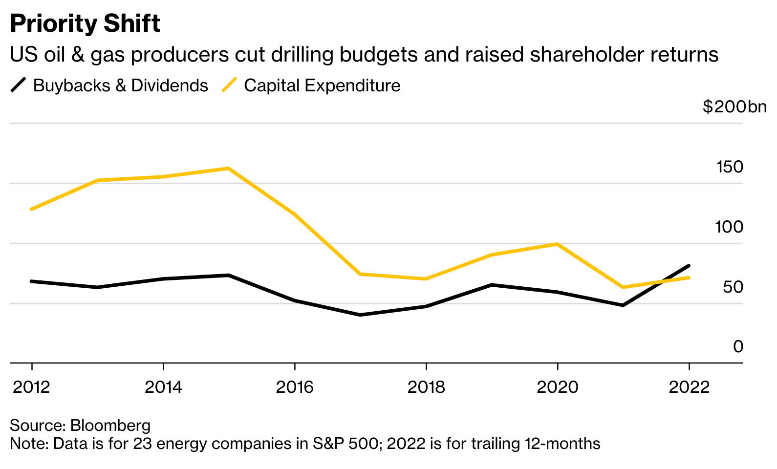 However, demand is falling slowly today and will accelerate largely because of the rapid electrification of mobility. EVs have already lowered oil demand by 3% globally, with 2⁄3 wheelers having the most impact and cars only beginning to contribute. This sounds like it would put lower pressure on prices but will likely have the opposite effect. New supply in fossil infrastructure is very constrained as companies avoid investing in assets with multi-decade payoffs that rely on that shrinking demand instead boosting shareholder returns.