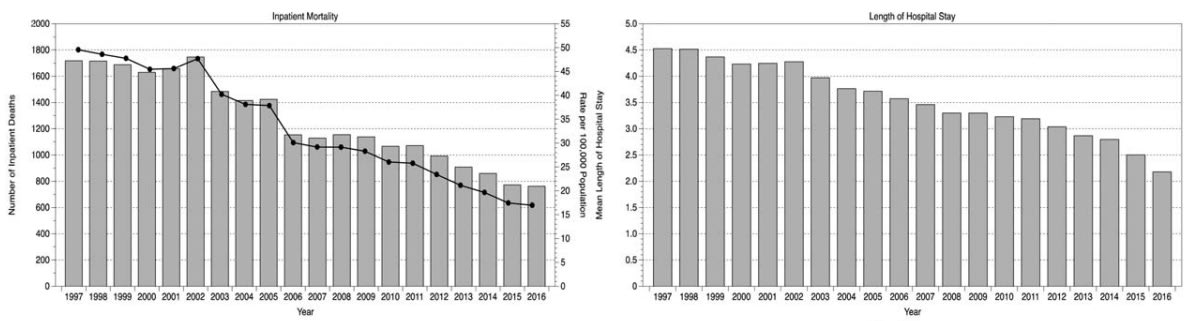 On a larger scale, among all emergency general surgery episodes in Scotland from 1997 to 2016, inpatient mortality mortality rates declined by more than three times and hospital stay lengths were cut in half, probably due to the rise of minimally invasive and robotic surgery tools.