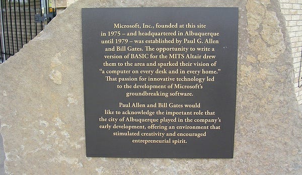 Albuquerque plaque honoring Microsoft, which decamped for the Seattle area in January 1979